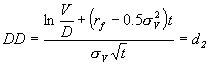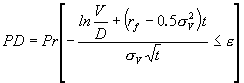 資料來源:KMV 根據上述違約距離的定義以及與違約機率的關係,可得出在選擇權評價模型下計算違約距離的公式: