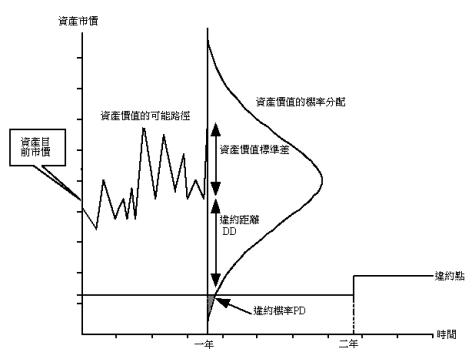 圖2-2 違約機率與違約距離